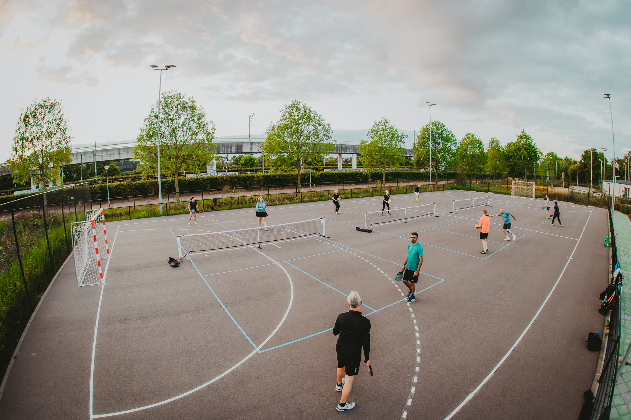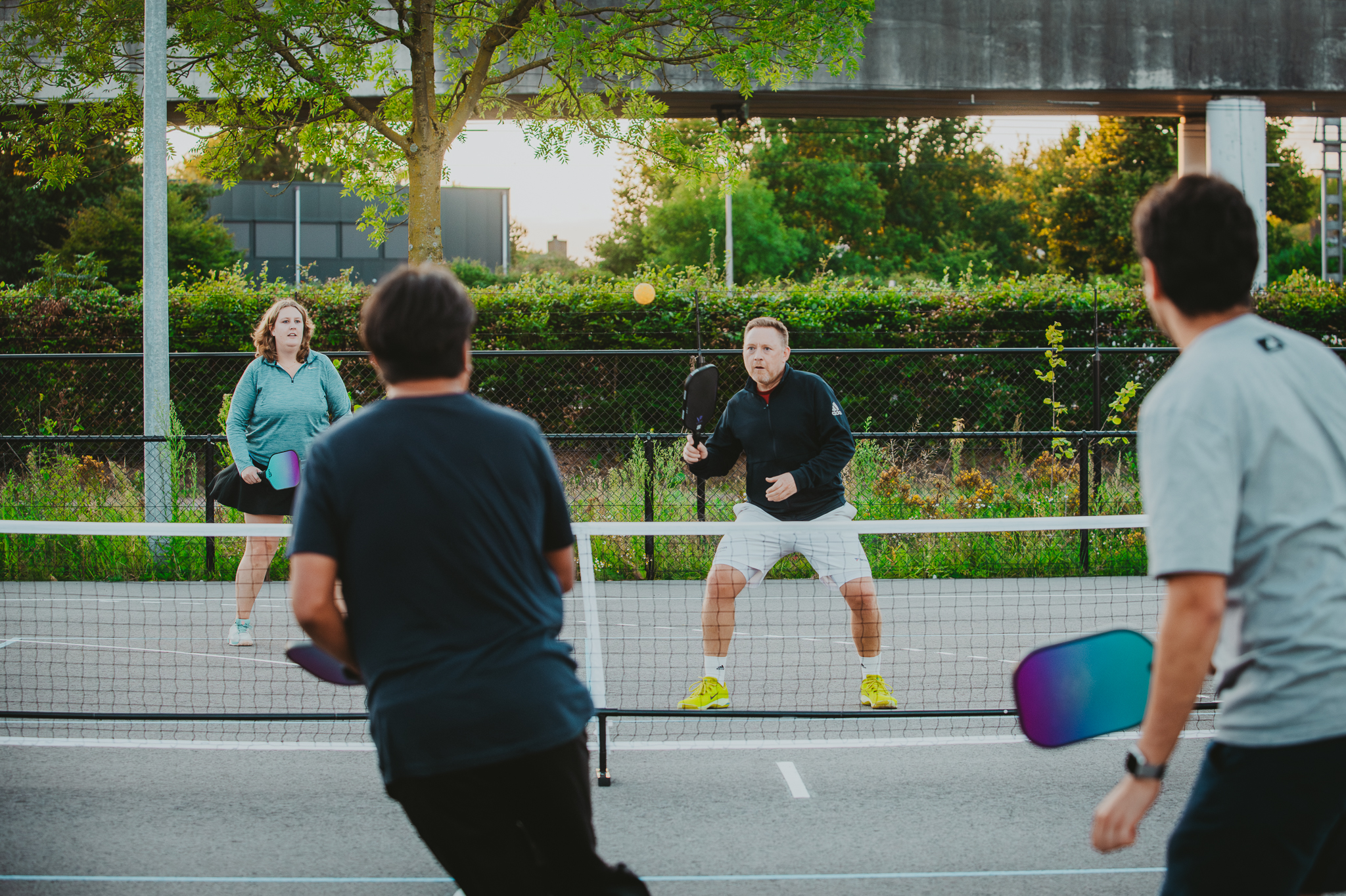 Pickleball wordt gespeeld in een groep. Je komt op vaste tijden naar de club en speelt een aantal korte wedstrijden, steeds tegen andere tegenstanders. Social play wordt dat ook wel genoemd, voor iedereen van elk niveau.
